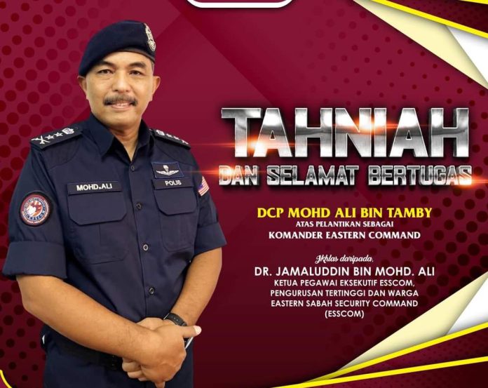 KOTA KINABALU: YDP DCP Mohd Ali Tamby memulakan tugas sebagai Komander Eastern Command (KEC) Eastern Sabah Security Command (ESSCOM) yang baharu hari ini.