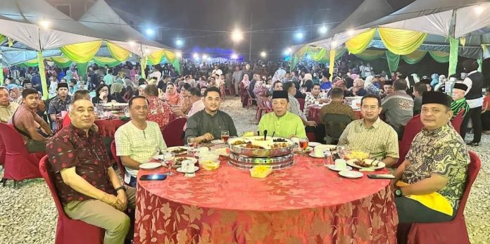 TUARAN: Pengerusi Badan Perhubungan UMNO Sabah Datuk Seri Panglima Bung Moktar Radin terkejut dengan sambutan luar biasa masyarakat kampung Mengkabong Tuaran khususnya ahli-ahli UMNO di bahagian itu, dalam majlis sambutan rumah terbuka Aidilfirti Penolong Setiausaha badan perhubungan UMNO Sabah Al fian Sambas di kediaman beliau di kampung Mengkabong Tuaran baru-baru ini.