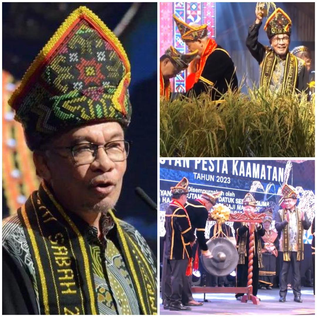 PENAMPANG:: Datuk Seri Anwar Ibrahim etched in history as the first Prime Minister to attend the state-level Kaamatan Festival at Hongkod Koisaan, near here today.