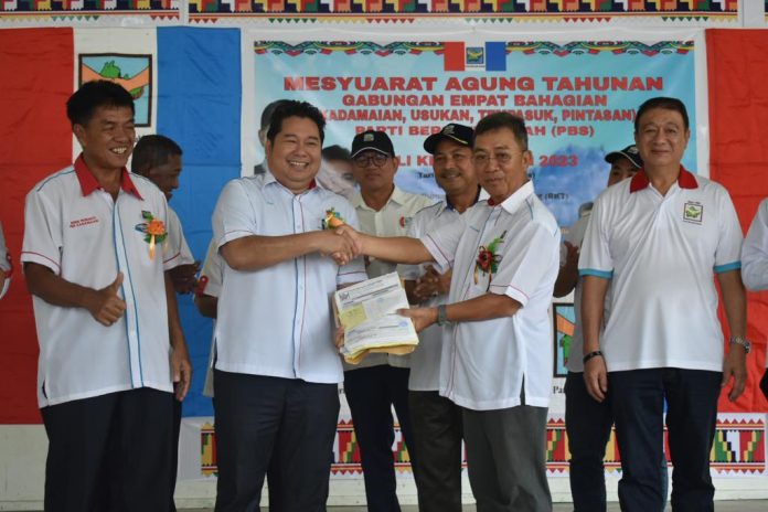 Dr. Joachim juga menerima borang permohonan keahlian daripada 700 orang yang disampaikan oleh Ketua Bahagian PBS Pintasan, Muji Ampau.