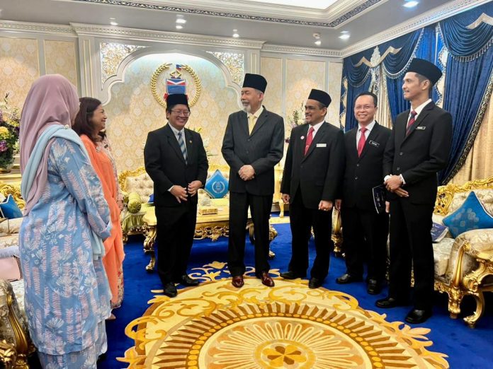 KOTA KINABALU: Kementerian Pembangunan Usahawan dan Koperasi (KUSKOP) bersama agensi Suruhanjaya Koperasi Malaysia (SKM) mengadakan kunjungan hormat kepada Yang di-Pertua Negeri Sabah Tun Haji Juhar Haji Mahiruddin, di Istana Seri Kinabalu, di sini, hari ini.