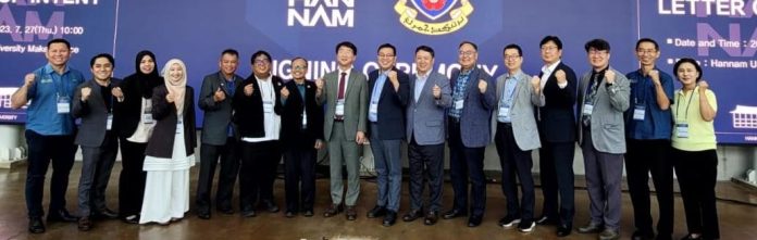Yang turut hadir, Dekan Pejabat Hal Ehwal Penyelidikan HNU, Prof. Dr. Tae-Dong Kim; Pegawai Maklumat LINC 3.0 Prof. Dr.Byung-Chul Lee; Prof. Dr. Heung-Soo Kim (LINC3.0); Prof. Dr. Bung-Kwon Min (LINC 3.0); Ketua LINC 3.0, Soo-Mi Kim, Ketua Kilang Reka Bentuk Hannam, En. Hyo-Kyun Park; serta Penyelidik LINC 3.0, Hyun-Woo Kim dan Jin-Sun Yang.