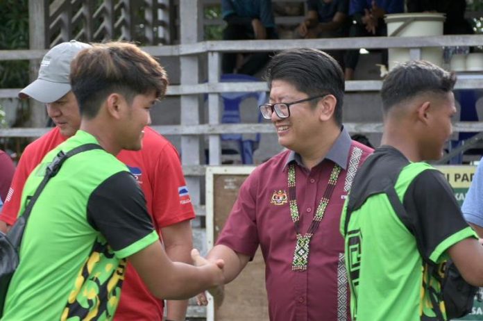 KOTA BELUD: Presiden Pertubuhan Kinabalu Progresif Bersatu (UPKO) Datuk Ewon Benedick merasmikan penutupan Kejohanan Bola Sepak 9 Sebelah Zon A (Kota Belud, Kota Marudu dan Kudat) Piala UPKO, di Padang Dudan Kg.Piasau, di sini, kelmarin.