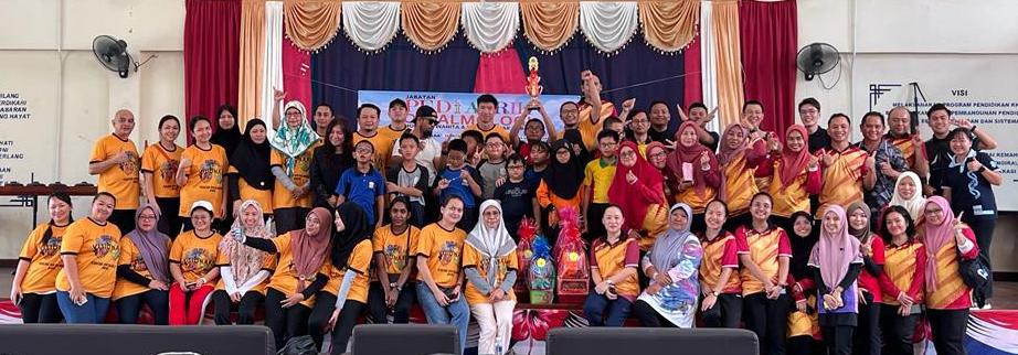 SK Pendidikan Khas Tuaran memenangi pertandingan secara keseluruhan dan memegang piala pusingan.