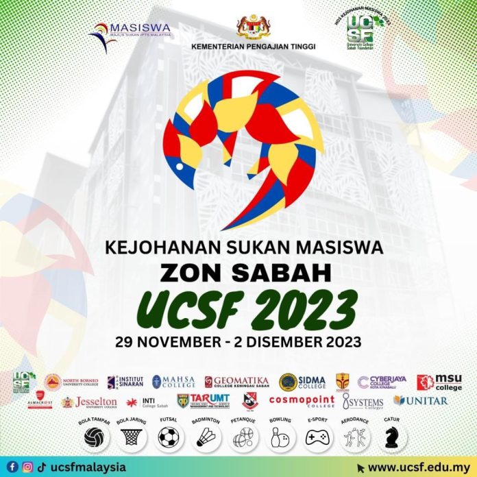 KOTA KINABALU: University College Sabah Foundation (UCSF) menjadi tuan rumah Kejohanan Sukan Antara Institut Pengajian Tinggi Swasta (IPTS) (Sukan MASISWA) Zon Sabah 2023 yang akan berlangsung pada 29 November hingga 2 Disember 2023.