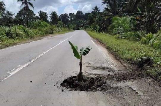 Plant banana trees to conceal potholes on the Sandakan-Lahad Datu road