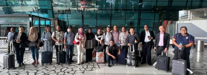 HARI PERS: Rombongan media Malaysia bergambar sejurus tiba di Lapangan Terbang Antarabangsa Soekarno-Hatta, Jakarta semalam.