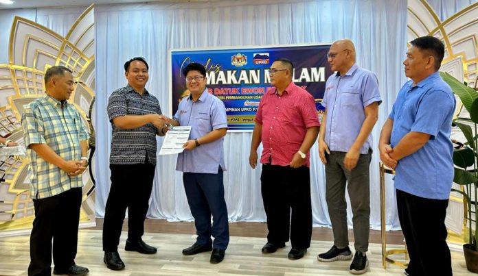 Ewon menerima permohonan keahlian daripada Shawn semasa majlis makan malam bersama UPKO Lahad Datu, semalam.
