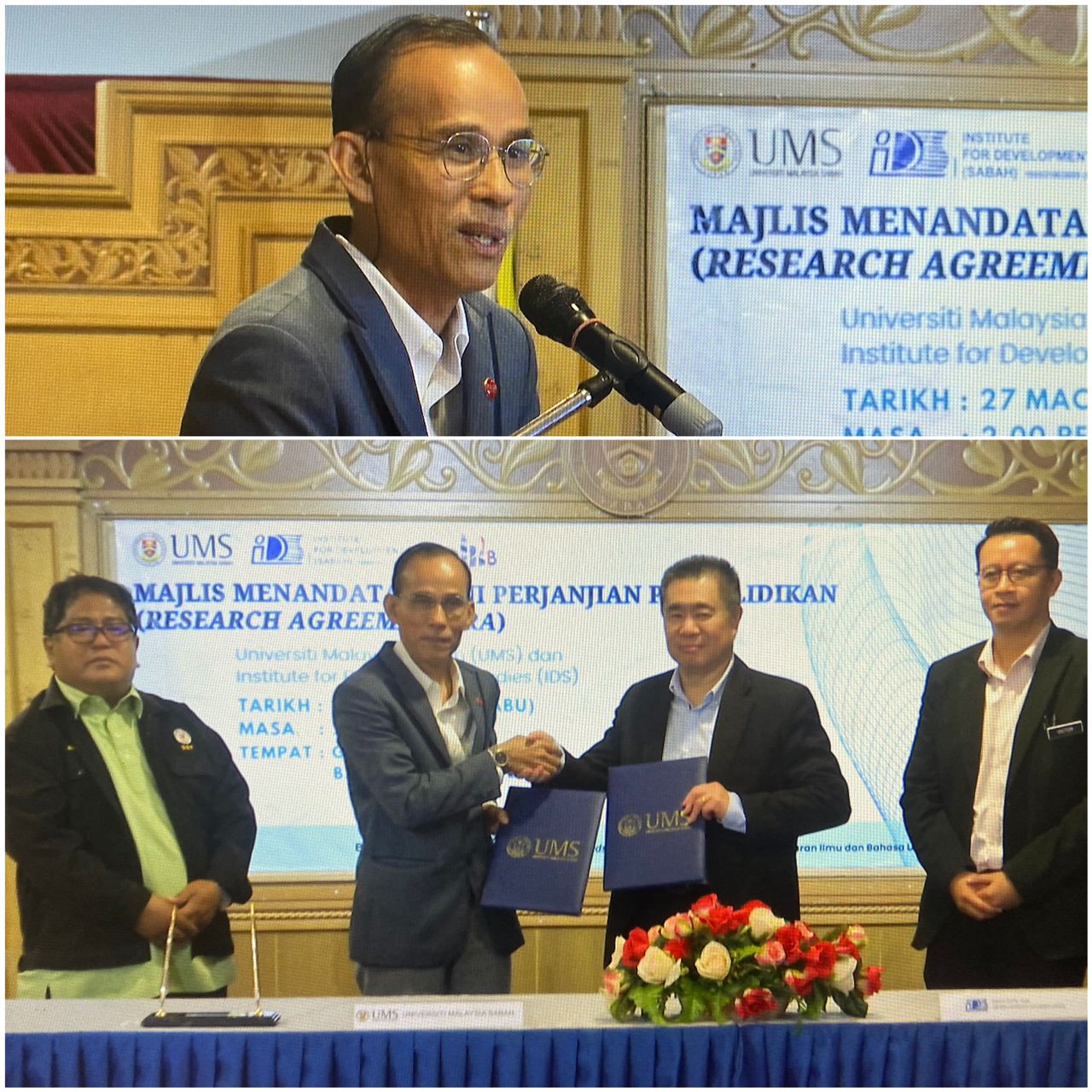 Professor Dr. Rosalam made these remarks during a speech at the signing ceremony of the research agreement between UMS and the Sabah Development Studies Institute (IDS) at the UMS Campus in Likas today.