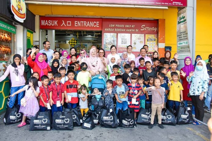 KOTA KINABALU: Sempena bulan Ramadan ini seramai 100 anak-anak yatim dan golongan asnaf Dun Darau diraikan membeli baju raya di Pusat Beli-belah Servay Hypermarket Likas di sini hari ini.