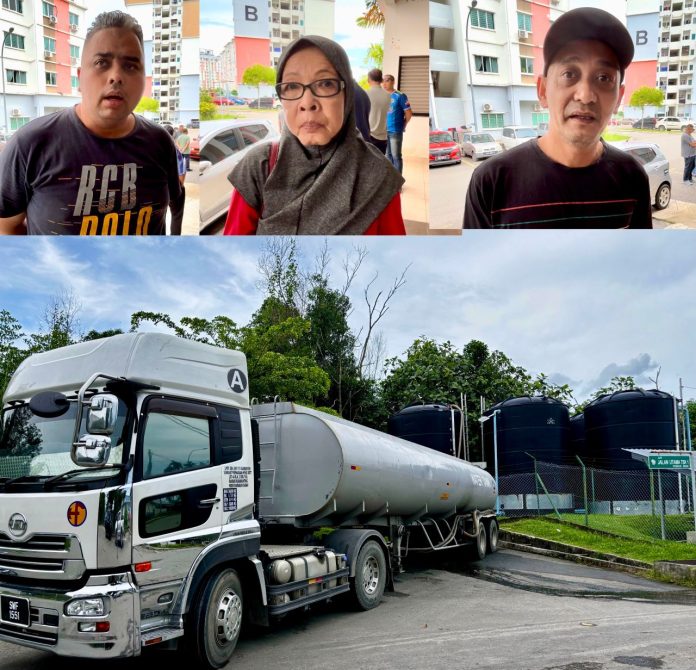 “Penghuni tiada pilihan terpaksa mengangkat sendiri bekalan air menggunakan baldi serta bekas tong air lain sehingga naik melalui tangga sehingga ke tingkat 10 rumah mereka.