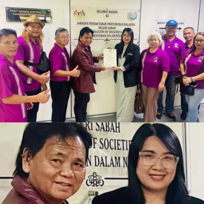 GASTS president Sitim Bandaron receiving the association’s registration certificate from the officer of the state, ROS Sahrizan Sellaazizianna binti Achmat.