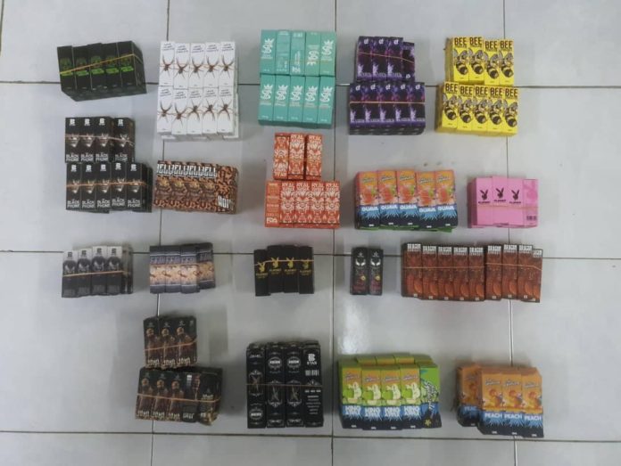 The authorities seized 7.85 kilogrammes of ketum powder, along with equipment used for processing and storing ketum water, as well as 227 bottles of various brands and sizes of vape liquids containing drugs, with an estimated total value of RM25,230.