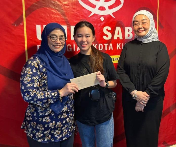 Terdahulu Hajah Musliati turut menyampaikan sumbangan pendidikan daripada Tabung Sektetariat Pendidikan Umno Malaysia kepada anak-anak ahli Umno Kota Kinabalu yang berjaya melanjutkan pengajian mereka ke unversiti.