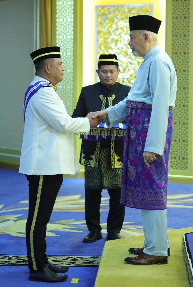 KOTA KINABALU: Presiden Persatuan Alumni Kolej Teknikal Yayasan Sabah (KTYS) Datuk Mohd Pkhruddin Bian dianugerahkan Darjah Kebesaran Panglima Gemilang Darjah Kinabalu (P.G.D.K) pada Majlis Penganugerahan Darjah Kebesaran Negeri Sabah oleh Yang di-Pertua Negeri Sabah Tun Juhar Mahiruddin di Istana Seri Kinabalu, hari ini.