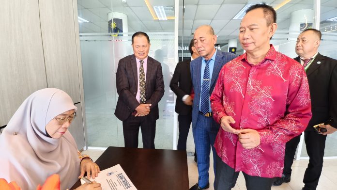 KOTA KINABALU: Menteri Pembangunan Luar Bandar Sabah, Datuk Jahid Jahim, telah menerima kunjungan hormat daripada Exco Pembangunan Luar Bandar Negeri Kedah, Dato’ Hajjah Ustazah Siti Ashah Binti Haji Ghazali, bersama rombongan delegasi dari negeri Kedah, di Bilik Mesyuarat Kementerian Pembangunan Luar Bandar Sabah (KPLB) Sabah, hari ini.
