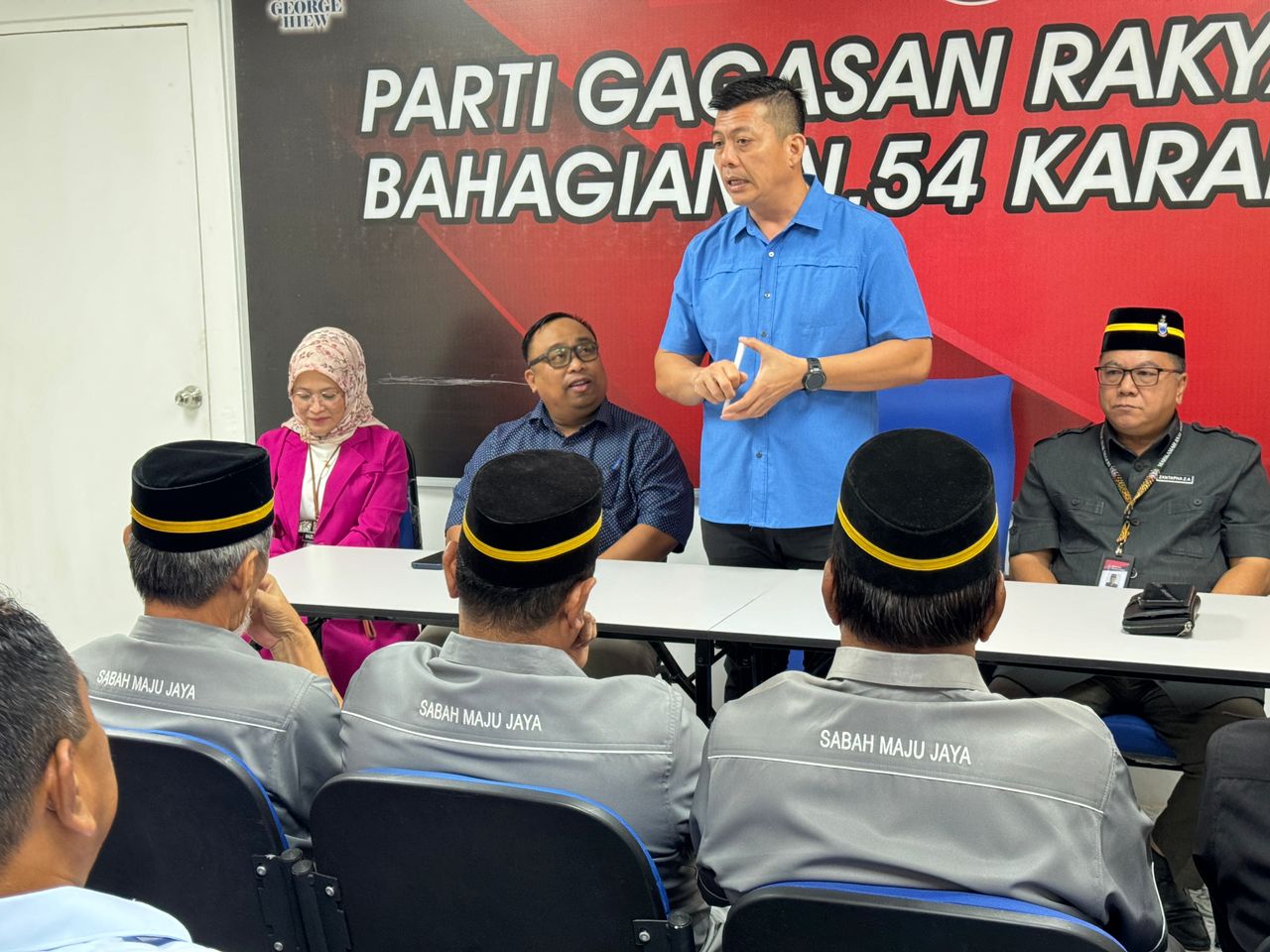 SANDAKAN: Ahli Dewan Undangan Negeri (ADUN) Karamunting, Datuk George Hiew Vun Zin, menyeru ketua-ketua masyarakat yang baru dilantik di Karamunting agar melaksanakan tanggungjawab dengan penuh komitmen serta bekerjasama menyokong dasar kerajaan demi memastikan pembangunan kawasan dapat dilaksanakan dengan lebih efektif.
