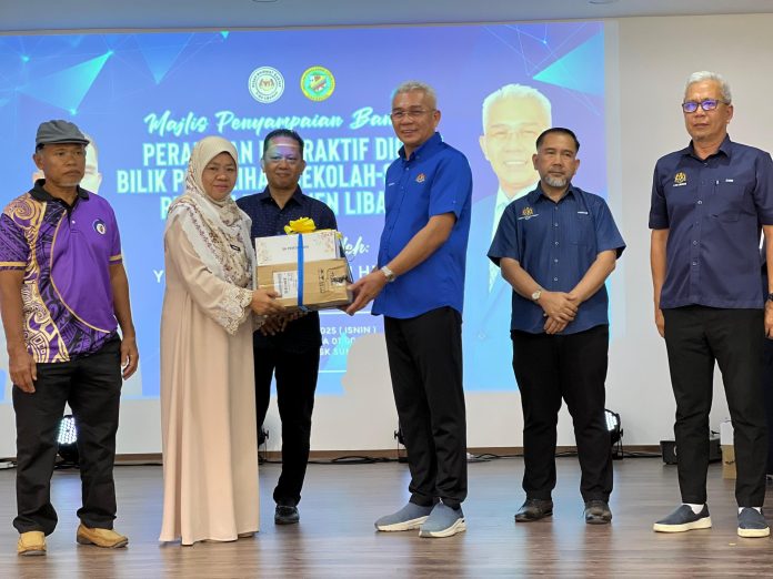 SANDAKAN: Ahli Parlimen Libaran Datuk Suhaimi Haji Nasir menyampaikan Bantuan Peralatan Interaktif Digital Bilik Pemulihan kepada 25 buah sekolah rendah dalam Parlimen Libaran.