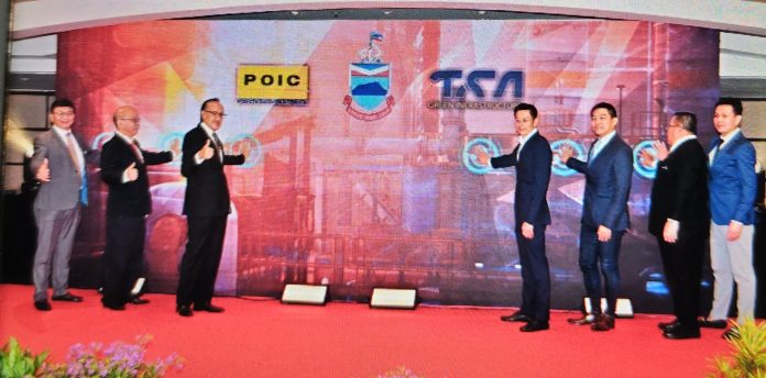 The launch event, held at Hyatt Regency Kinabalu Hotel, was officiated by Finance Minister Datuk Seri Panglima Masidi Manjun, representing the Chief Minister, who witnessed the official exchange of the Land Lease and Oil Terminal Development Agreement between POIC Lahad Datu, represented by its CEO, Datuk Fredian Gan, and TS Asia Green Infrastructure CEO and Chairman of Sofos Group, Mr. Albert Tan.